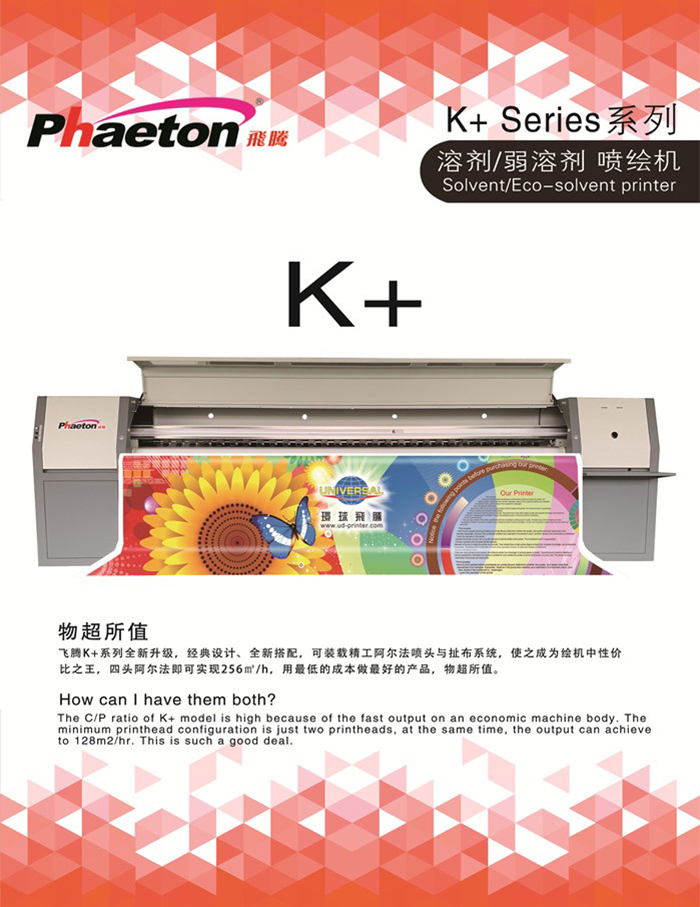 飛騰K+系列全新升級(jí),經(jīng)典設(shè)計(jì)、全新搭配,可裝載精工阿爾法噴頭與扯布系統(tǒng),使之成為繪機(jī)中性?xún)r(jià)比之王,四頭阿爾法即可實(shí)現(xiàn)256㎡/h,用最低的成本做最好的產(chǎn)品,物超所值。